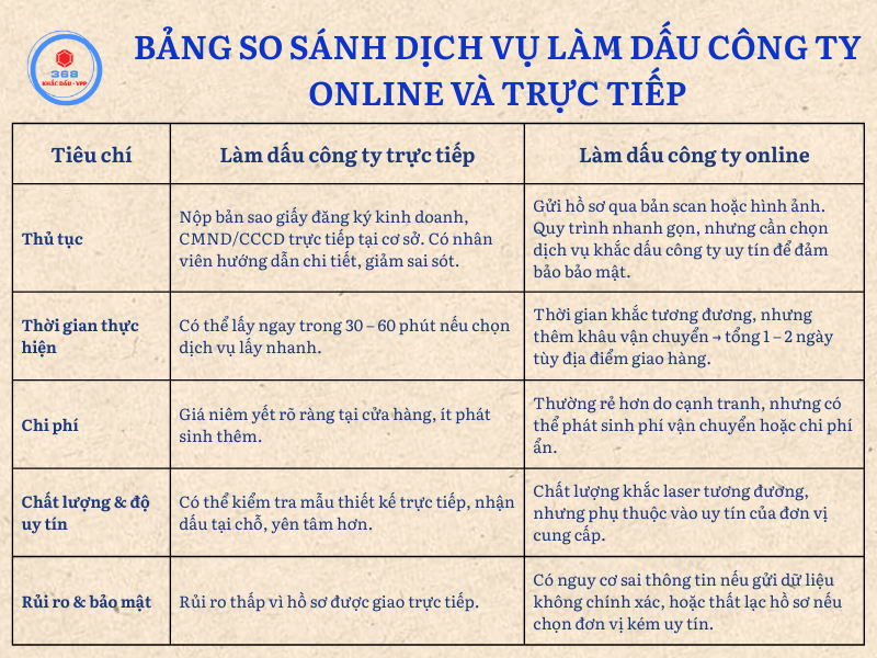 Bảng so sánh dịch vụ làm dấu công ty online và trực tiếp